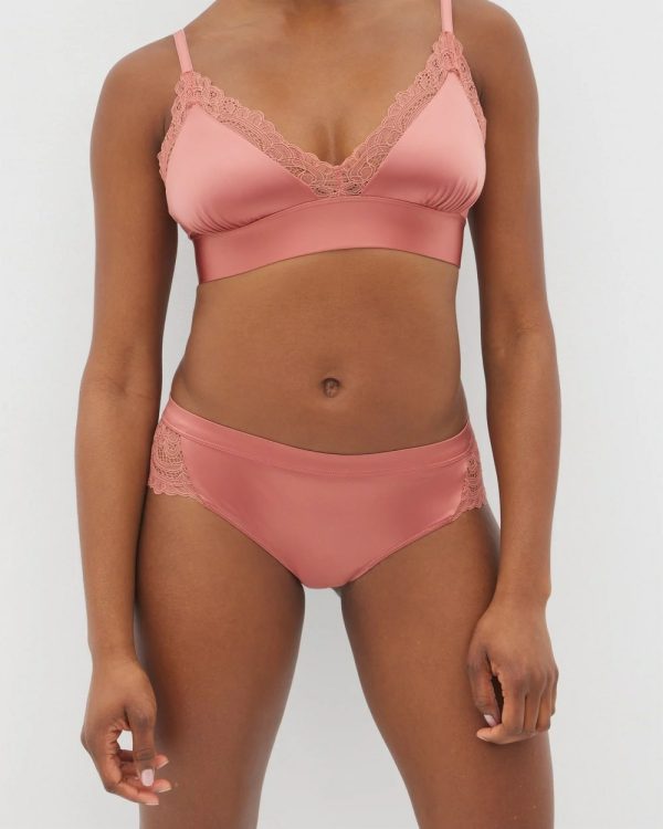 The softest satin ever made—our stretchy satin + lace cheeky hipster is a need not a want.