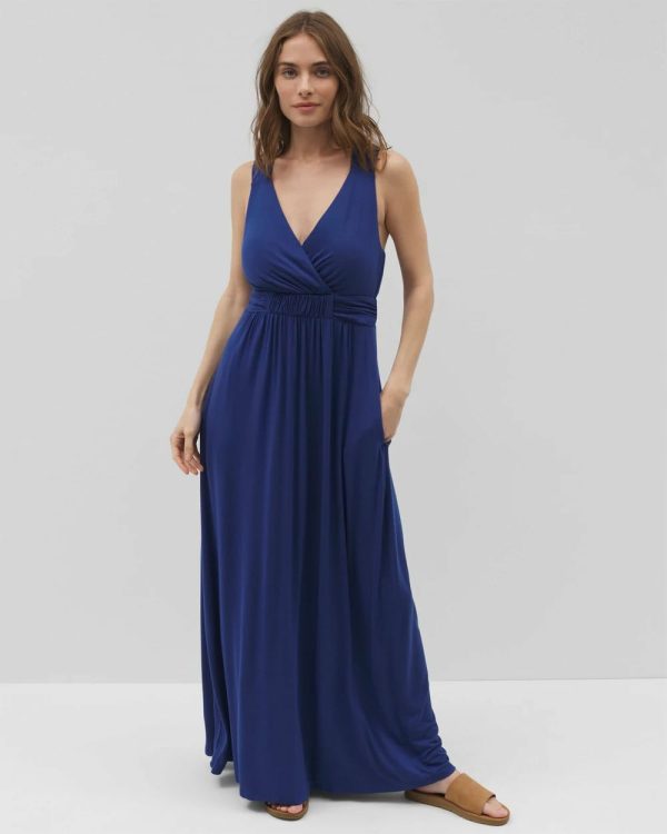 Take your spring and summer style to the max in this super soft maxi bra dress with an eye-catching cross back design. The details don’t end there. The built-in shelf bra is nice and comfy and makes getting dressed quick and easy. Bonus—it has pockets too.