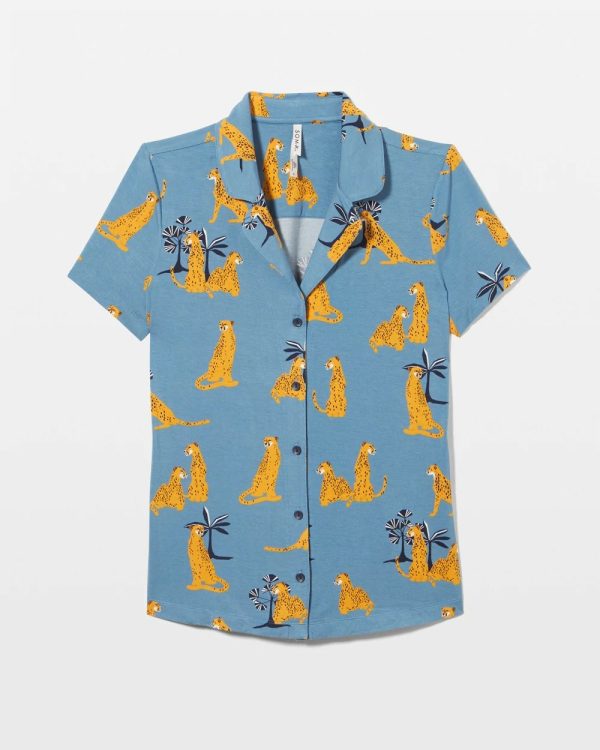 Matching Separates | Women Soma Piped Short Sleeve Notch Collar Pajama Top Shake Your Palm Palms Blk