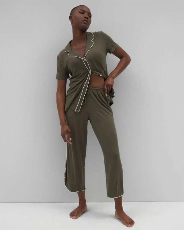Matching Separates | Women Soma Solid Piped Crop Pajama Pant Grape Leaf