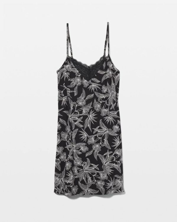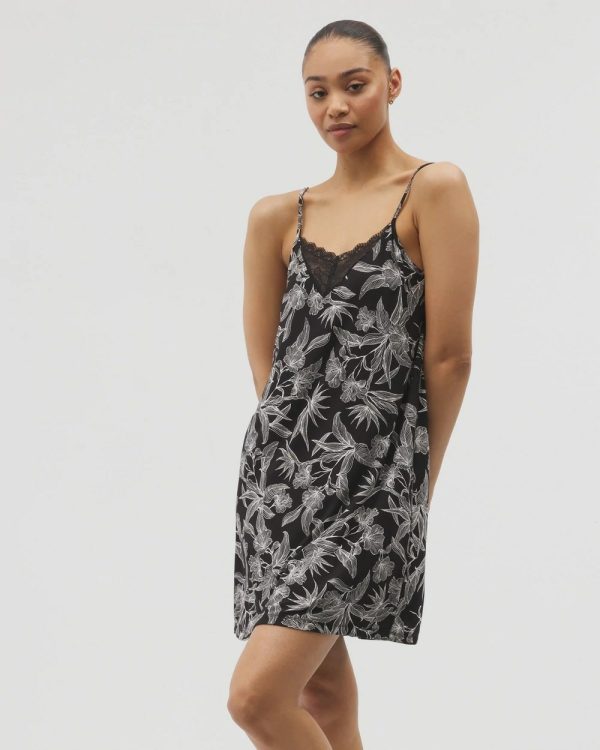 Nightgowns | Women Soma Lace Trim Chemise Plumeria Blooms Blk Ch