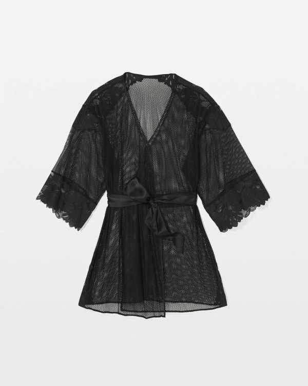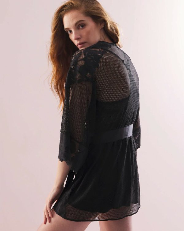 Our most luxurious lingerie yet–flirt with floral lace and mesh with our new sheer robe.