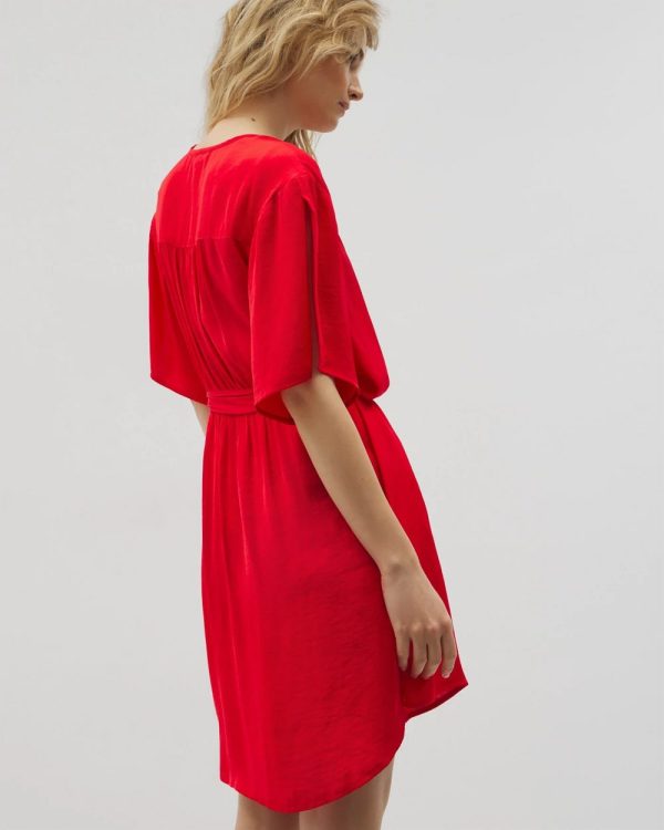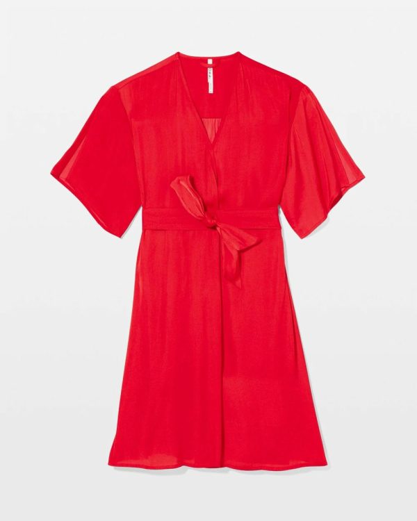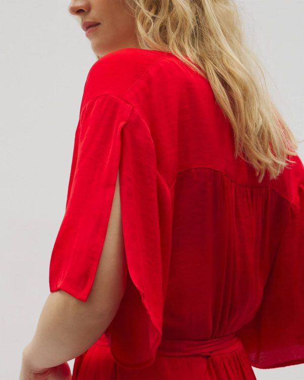 - Attached self-tie belt can flip up or down for the perfect waist placement