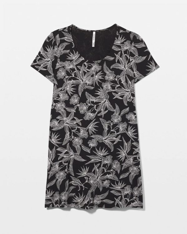 Sleepshirts | Women Soma Short Sleeve Scoop Neck Sleepshirt Plumeria Blooms Blk Ch