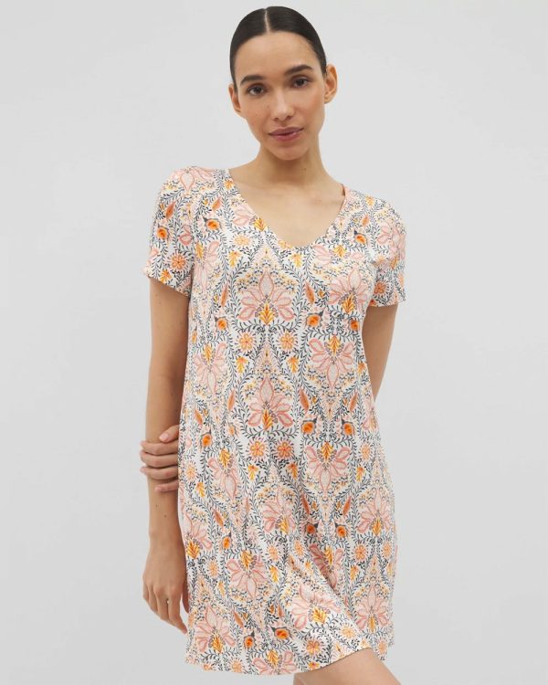 Sleepshirts | Women Soma Short Sleeve Sleepshirt Vine Paisley Champagne M