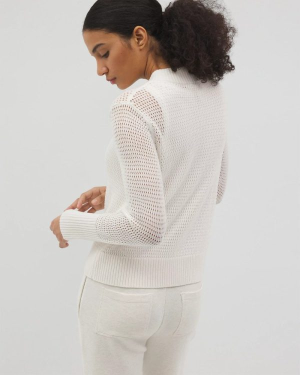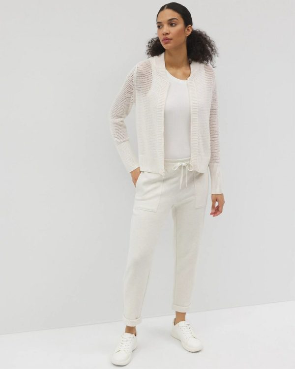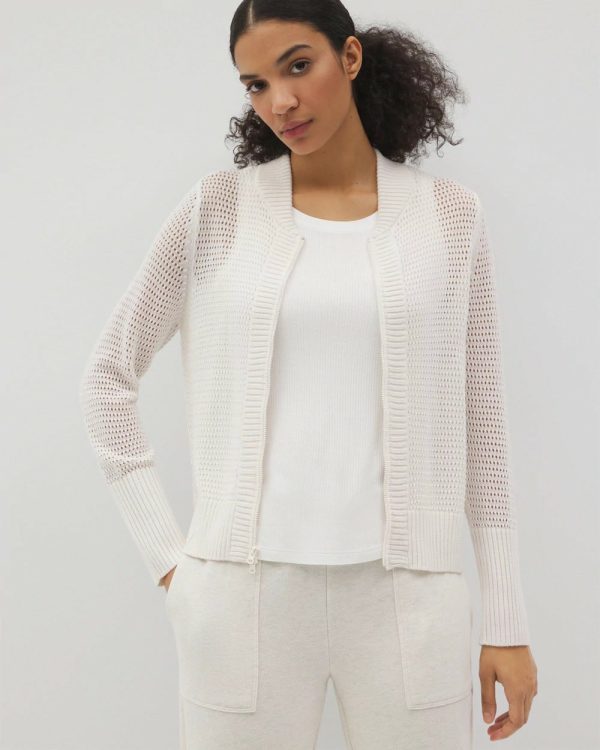 Made from recycled yarn, this adorable open stitch sweater is perfect for zipping up over your spring + summer tops when you need a light layer.