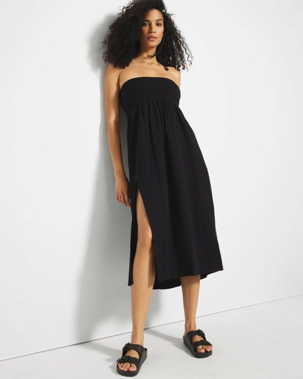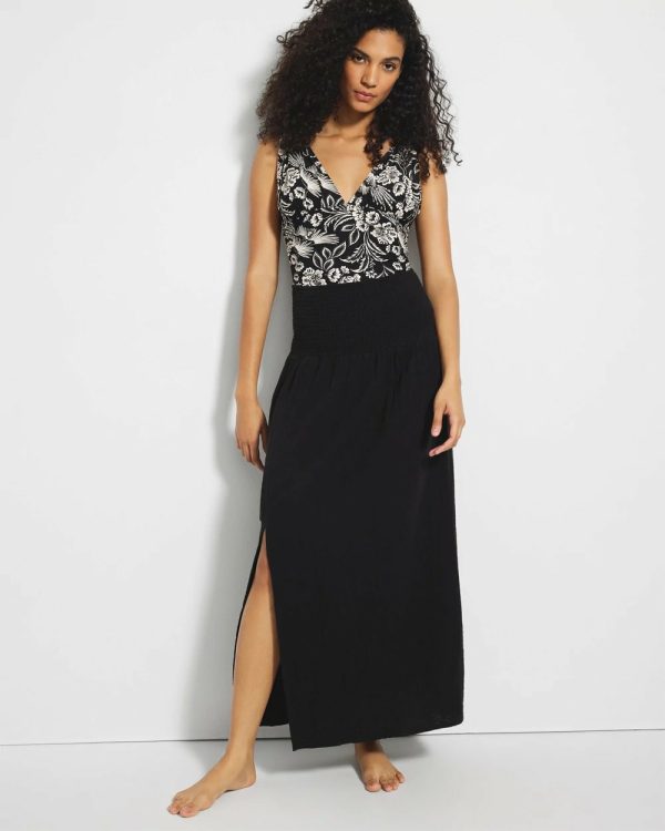 Introducing the ultimate swim cover-up that can be worn as a dress or skirt! Our Soma® Swim Convertible Skirt Dress has a smocked top band that sits either at the bust or waist for a versatile layering option over your swimsuit. Perfect for saving space in your travel bag, get two looks out of one style. The high-cut slit in front adds a fun and flirty feel and the 100% Cotton fabric ensures you stay breezy on a hot day.