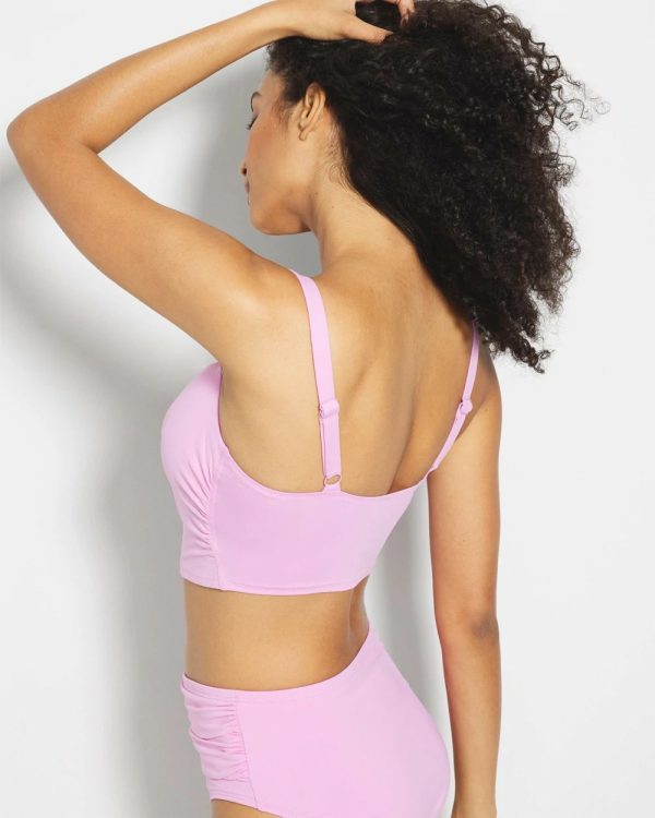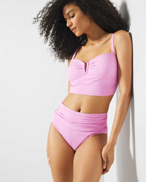 This cropped bikini top flatters your shape with strategically placed ruching down the sides and a V-wire accent for a peek of skin. Adjustable straps and molded cups provide a supportive fit so you can feel confident and comfortable wherever this swimsuit takes you. Mix and match your way to the perfect swim set with our selection of coordinating Soma® Swim bottoms in versatile solids and fun prints.